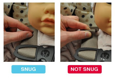 When buckling a strap, you should not be able to pinch two pieces of the same strap together. If you have enough slack to pinch it away, the strap is too loose. The straps also need to lie flat, and untwisted all the way through the seat.